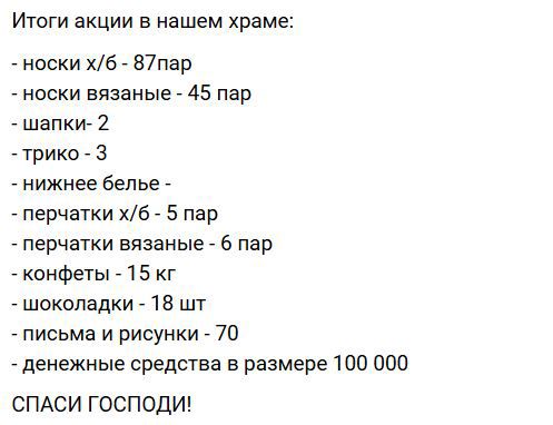 Спаси Господи всех священников, социальных работников, прихожан и жителей Свердловской области за активное участие в акции "Подарок Герою"!