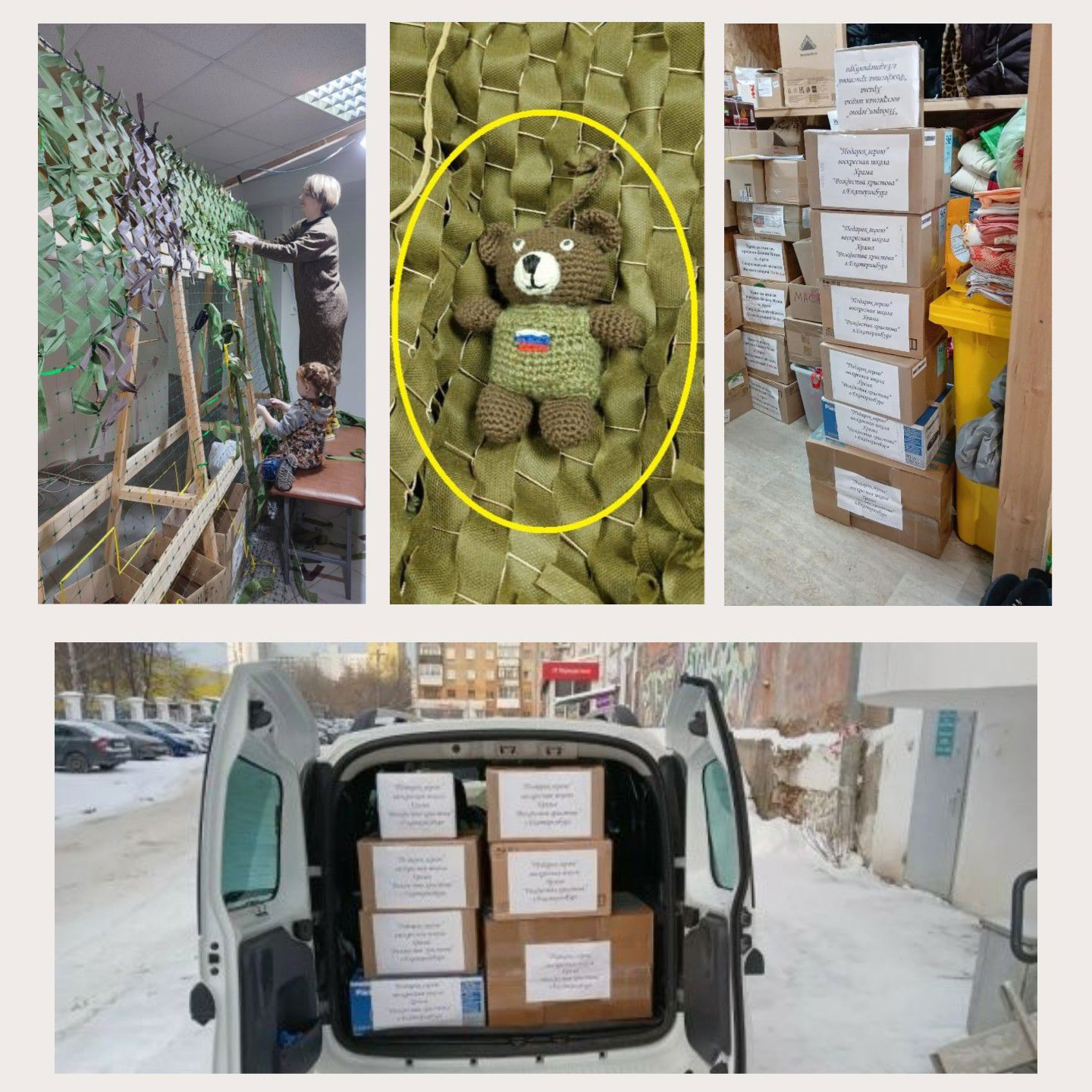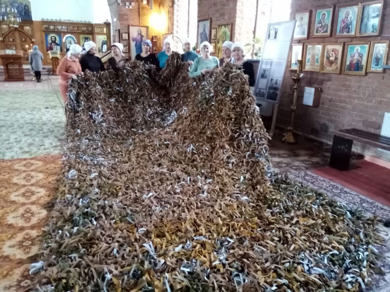 Работа в мастерской Духовного центра Храма Рождества Христова по плетению маскировочных сетей не прекращается ни на один день. В ноябре мастерицы изготовили 28 маскировочных накидок. Связанный прихожанкой храма Еленой Демидовной милый Мишутка также отправился в зону боевых действий, чтобы поддержать бойцов. В декабре мастерицы за неделю изготавливают по 6 маскировочных накидок! А также выражают благодарность благотворителям храма и всем тыловым помощникам за изготовление 300 окопных свечей, которые уже отправлены штурмовикам на Купянское направление фронта. К свечам приложили шерстяные носки и средства личной гигиены.