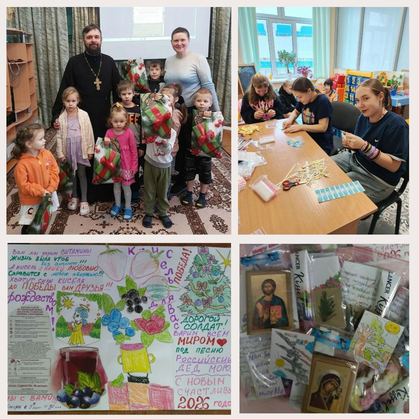 В храме святого великого князя Владимира 14 декабря добровольцы и сестры службы «Милосердие» храма сформировали рождественские подарки для воинов СВО. В акции активное участие приняли воспитанники воскресной школы. В итоге, в подарочные пакетики были вложены теплые носки, плитка шоколада и детская поздравительная открытка. Всего сформировано более 300 подарков. Также для передачи воинам СВО подготовили 176 окопных свечей разного объема.
